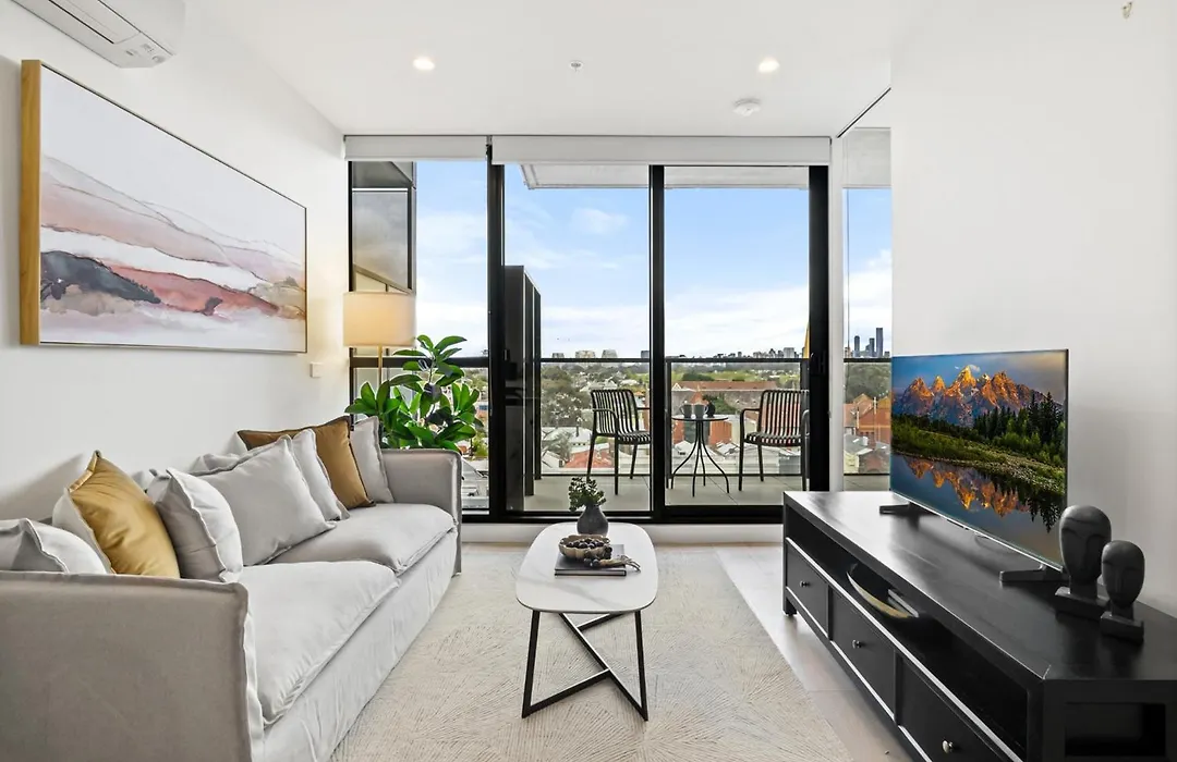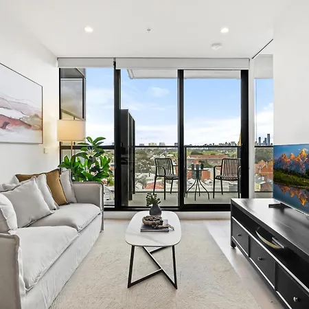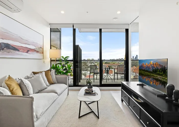 Das 57 m² große Apartment South Yarra Stay With Balcony Views Melbourne City verfügt über eine Terrasse und liegt in ca. 3 km Entfernung vom Luna Park.